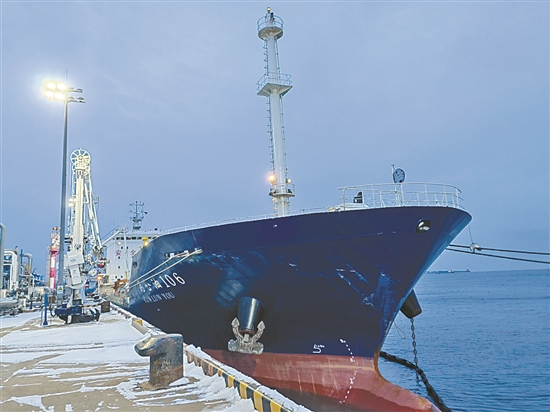 2月20日10時30分,大連石化轉運車間操作員克服極端天氣的影響,主動與“新進號”“昆侖206”等4條船的負責人謀劃對接、協(xié)同帶纜和檢查,及時辦理裝船手續(xù),確保裝船作業(yè)高效有序進行,實現(xiàn)了“聯(lián)系、帶纜、裝船”無縫銜接。2月22日,“昆侖106”“昆侖206”分別裝載1.15萬噸、2.7萬噸0號車用柴油駛往國內各地。(畢楠 李信 王世慶)