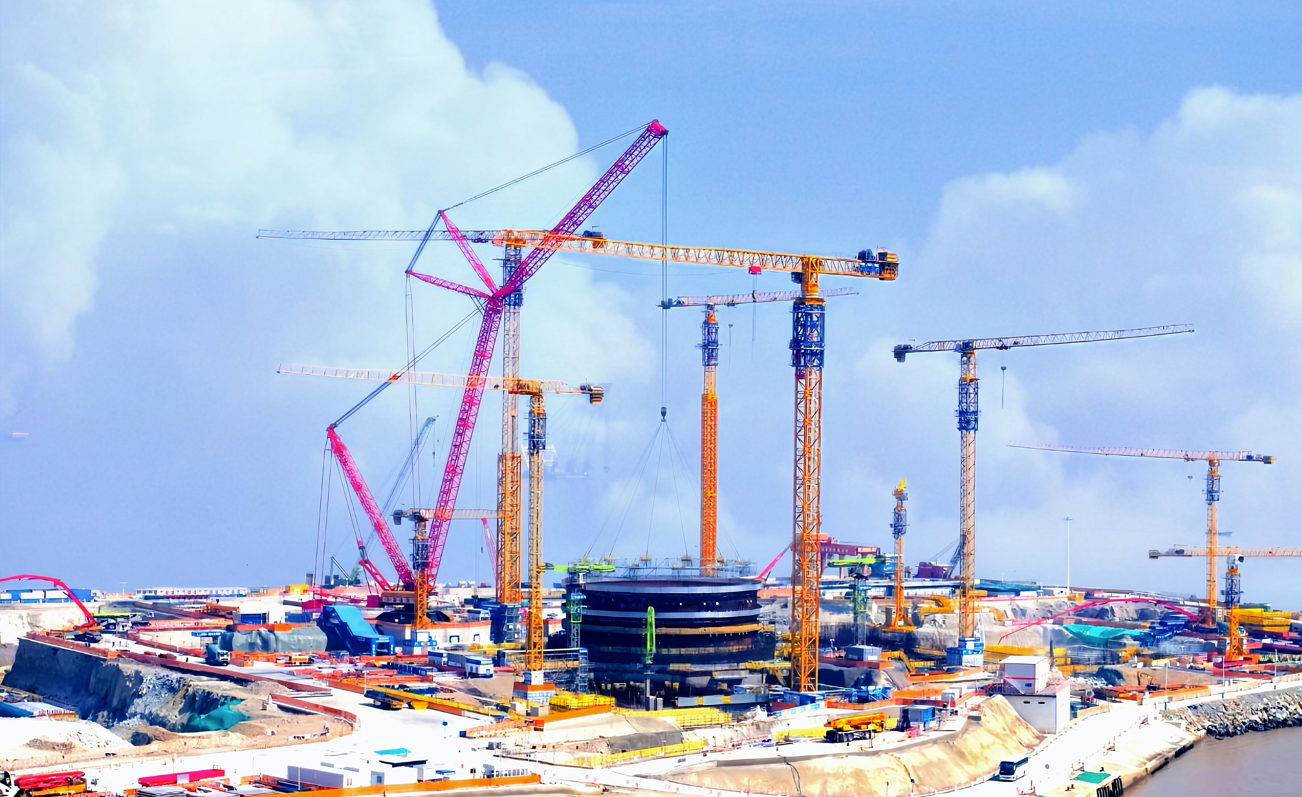寧德核電項(xiàng)目位于福鼎市太姥山鎮(zhèn),規(guī)劃建設(shè)6臺(tái)百萬(wàn)千瓦級(jí)機(jī)組,分兩期建設(shè)。其中二期建設(shè)5號(hào)、6號(hào)機(jī)組工程是國(guó)家重大能源項(xiàng)目。本次吊裝的核島反應(yīng)堆廠房鋼襯里是“華龍一號(hào)”安全殼的主要組成部分,主要作用是承受設(shè)計(jì)基準(zhǔn)事故下的壓力,防止放射性物質(zhì)泄漏,是核電站的重要安全屏障。本次吊裝的鋼襯里模塊三由筒體3層組成,高度5.73米,模塊重量88.77噸,吊裝總重量181.36噸,采用一次性整體吊裝工藝,吊裝全過(guò)程安全質(zhì)量可控。廣東火電負(fù)責(zé)寧德核電5號(hào)、6號(hào)機(jī)組場(chǎng)內(nèi)運(yùn)輸、碼頭吊管理以及穹頂?shù)痊F(xiàn)場(chǎng)大件吊裝。