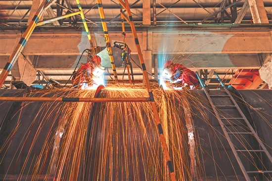 圖為施工人員正在進(jìn)行焊接作業(yè)。