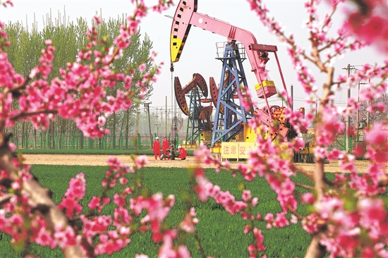 圖為華北油田采油五廠春季生產(chǎn)場景。