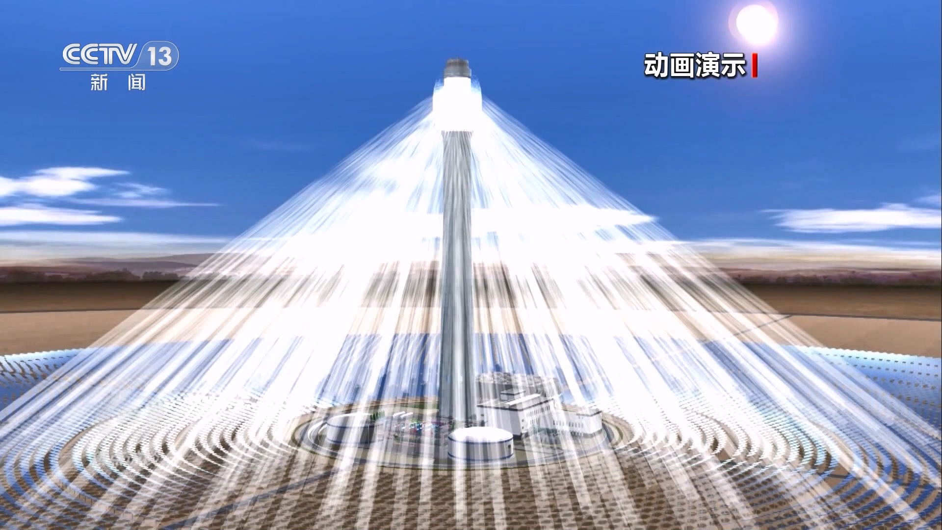 電站通過高精度智能定日鏡,實時跟蹤太陽的運動,將太陽直接輻射光反射聚集到吸熱塔上,將吸熱塔內(nèi)的熔鹽加熱到560余攝氏度的高溫,將高溫的熔鹽進行儲存,在需要發(fā)電時再通過高溫熔鹽與水產(chǎn)生熱交換,產(chǎn)生高溫高壓的蒸汽,驅(qū)動汽輪發(fā)電機組發(fā)電。