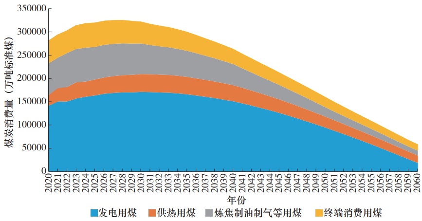 我國(guó)煤炭消費(fèi)預(yù)計(jì)在“十五五”前中期進(jìn)入49.5億~51億噸(國(guó)產(chǎn)原煤+進(jìn)口商品煤)的峰值平臺(tái)期,2030年略有回落至49億噸左右,“十六五”時(shí)期下降顯著,2035年降至46億噸以內(nèi),但仍占據(jù)能源消費(fèi)的主體地位(占比約42%)。2035年后,隨著非化石能源規(guī)?;l(fā)展,火電用煤逐步下降,同時(shí)各行業(yè)終端用能電氣化替代加速,煤炭消費(fèi)量將加速下降,到2050年降至24.5億噸左右,2060年進(jìn)一步降至8億~10億噸,占一次能源消費(fèi)的百分比較2024年下降43個(gè)百分點(diǎn),保持在10%左右。