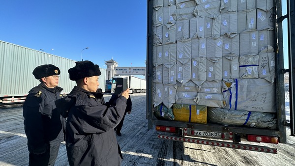 哈爾濱海關(guān)所屬綏芬河海關(guān)關(guān)員對進(jìn)口貨物實(shí)施查驗(yàn)。哈爾濱海關(guān)供圖