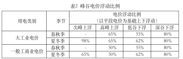 二、峰谷時(shí)段及電價(jià)浮動(dòng)比例