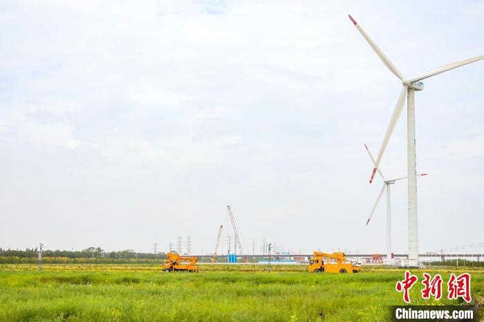 崇明地區(qū)風(fēng)電和光伏。國(guó)網(wǎng)上海電力供圖