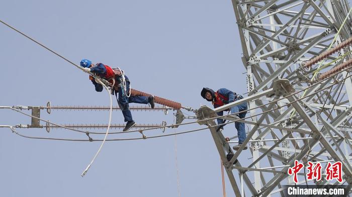 2月27日,國網(wǎng)阿克蘇供電公司工作人員開展終端塔與水電站之間的引流線搭接工作。李聰攝
