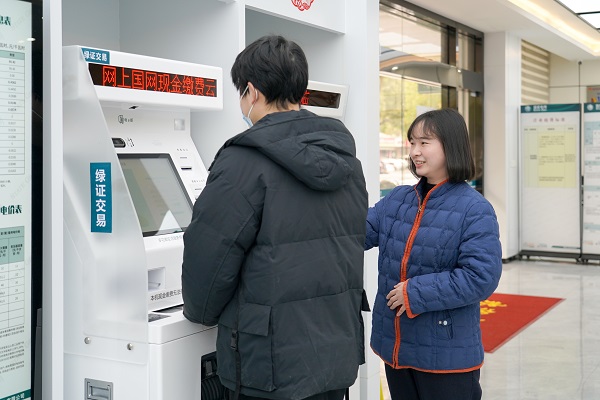 為了豐富綠證交易方式渠道、為企業(yè)提供從咨詢到購買的“一站式”綠證交易服務(wù),國網(wǎng)蘇州供電公司以太倉為試點(diǎn),在太倉城區(qū)供電營業(yè)廳自助終端系統(tǒng)接入“e交易”功能模塊,安排“電力市場輔助交易員”,在為企業(yè)開展綠電綠證交易相關(guān)政策宣傳的同時(shí),現(xiàn)場引導(dǎo)意向企業(yè)完成交易服務(wù)。