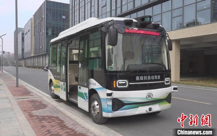 合肥市內(nèi)測試運行的新能源無人駕駛巴士。張俊攝
