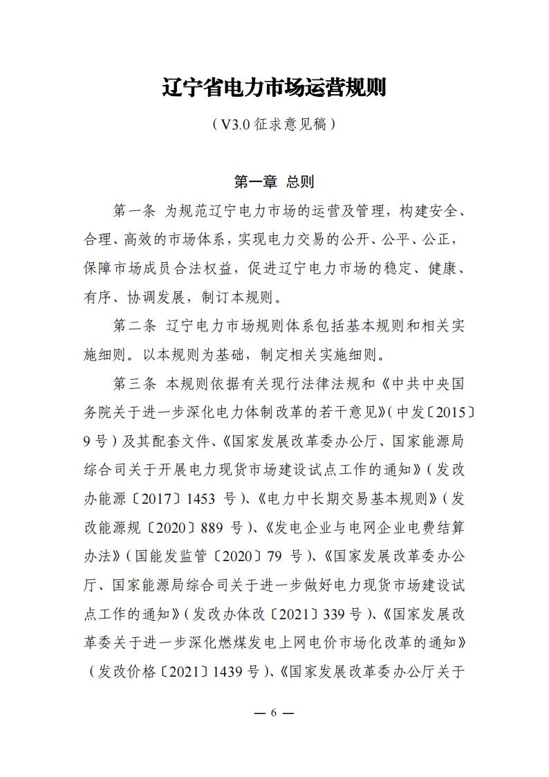 關(guān)于公開征求“遼寧省電力市場運(yùn)營規(guī)則及配套實施細(xì)則”意見的通知