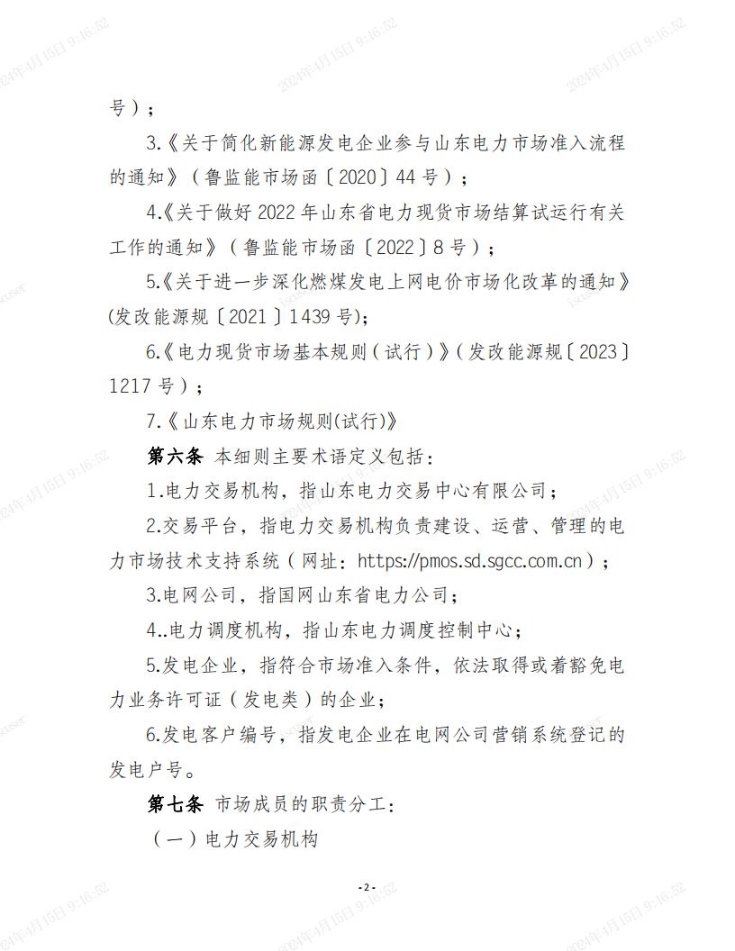 關(guān)于公開征求《山東電力市場電力用戶注冊管理細(xì)則(試行)》及《山東電力市場發(fā)電企業(yè)注冊管理細(xì)則(試行)》(征求意見稿)意見的通知