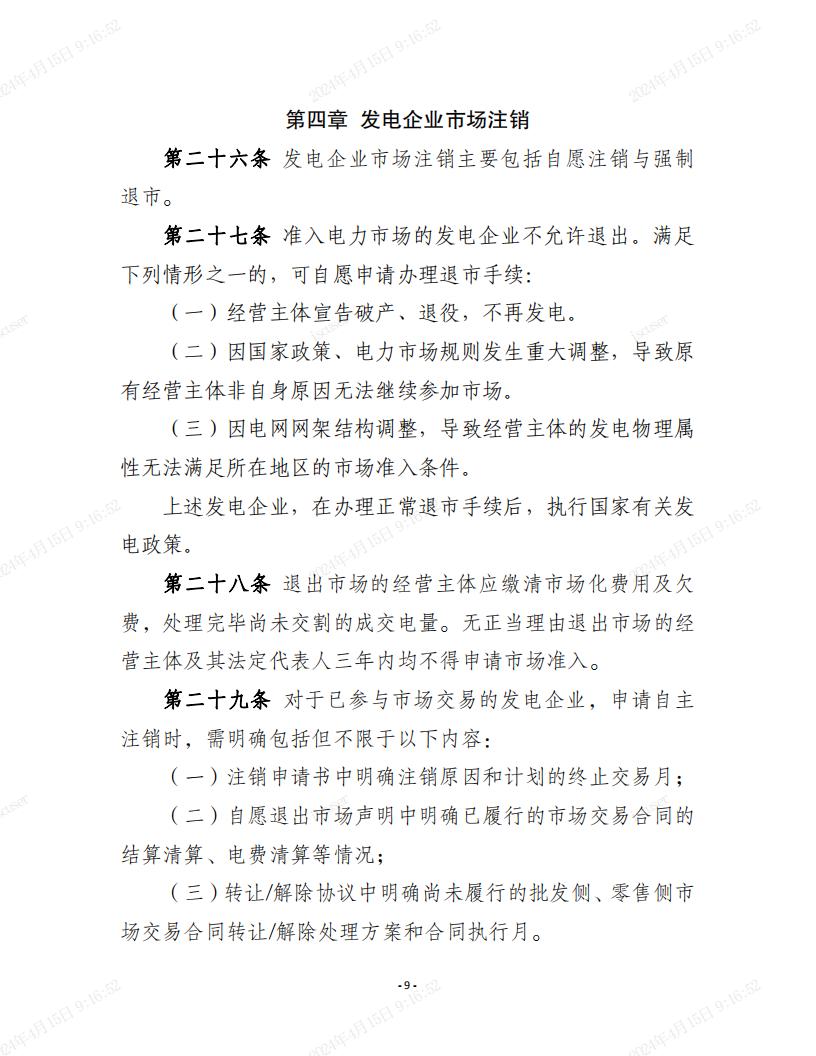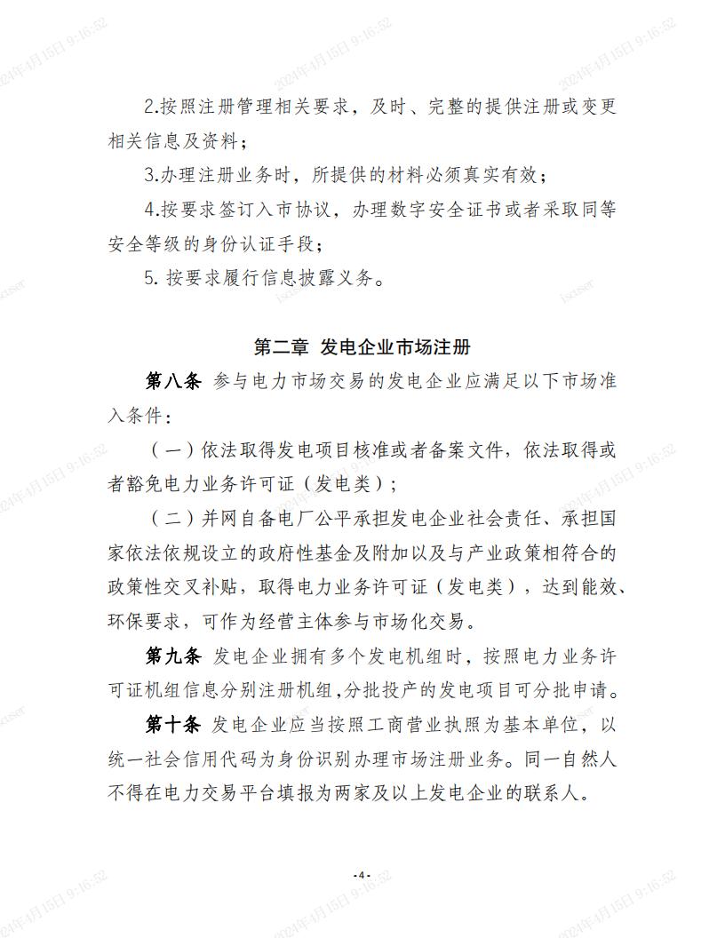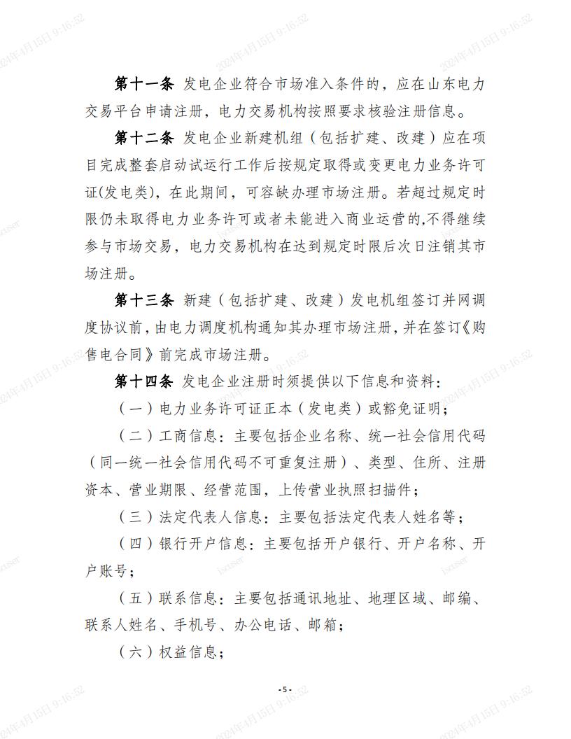《山東電力市場發(fā)電企業(yè)注冊管理細(xì)則(試行)》(征求意見稿)提到,發(fā)電企業(yè)需具備電量數(shù)據(jù)分時(shí)計(jì)量與傳輸或替代技術(shù)手段,數(shù)據(jù)準(zhǔn)確性與可靠性應(yīng)能滿足交易要求,應(yīng)是具有法人資格、財(cái)務(wù)獨(dú)立核算、信用良好、能夠獨(dú)立承擔(dān)民事責(zé)任的經(jīng)濟(jì)實(shí)體。內(nèi)部核算的經(jīng)營主體經(jīng)法人單位授權(quán),可申請參與電力市場交易。