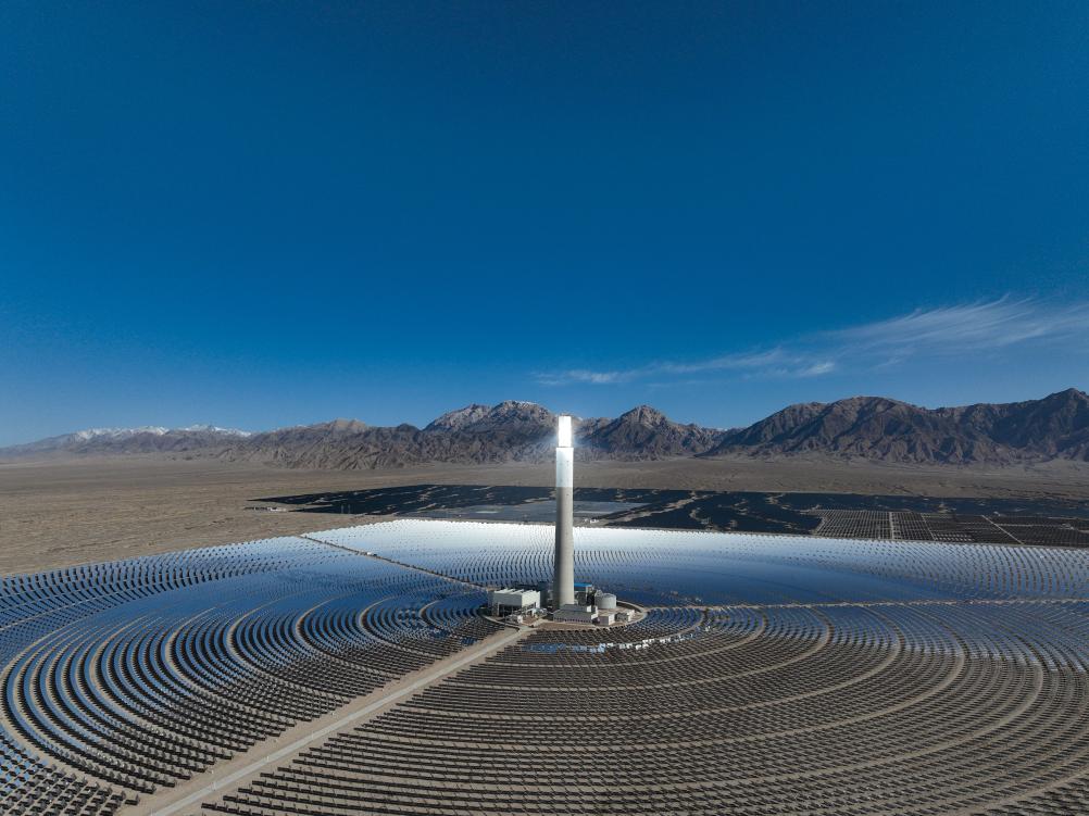 這是4月23日在青海省海西蒙古族藏族自治州德令哈市光伏(光熱)產(chǎn)業(yè)園拍攝的光熱電站(無人機(jī)照片)。新華社記者張龍攝