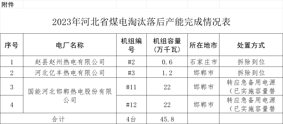 附件:2023年河北省煤電淘汰落后產(chǎn)能完成情況表