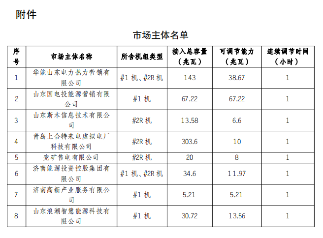 根據(jù)國家能源局山東監(jiān)管辦公室、山東省發(fā)展改革委、山東省能源局《關(guān)于印發(fā)〈山東電力市場規(guī)則(試行)〉的通知》(魯監(jiān)能市場規(guī)〔2024〕24號)要求,山東電力交易中心對華能山東電力熱力營銷有限公司等8家虛擬電廠注冊信息進行了完整性校驗,現(xiàn)予以公示。