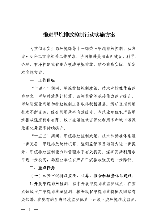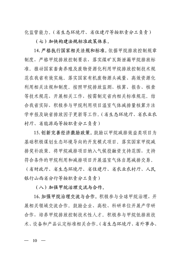 山西省生態(tài)環(huán)境廳等12部門(mén)印發(fā)《推進(jìn)甲烷排放控制行動(dòng)實(shí)施方案》,目標(biāo)“十四五”期間,甲烷排放控制政策、技術(shù)和標(biāo)準(zhǔn)體系逐步建立,甲烷排放統(tǒng)計(jì)核算、監(jiān)測(cè)監(jiān)管等基礎(chǔ)能力逐步提升,甲烷資源化利用和排放控制工作取得積極進(jìn)展。煤礦瓦斯利用技術(shù)不斷完善,綜合利用效率有效提升,養(yǎng)殖業(yè)單位農(nóng)產(chǎn)品甲烷排放強(qiáng)度穩(wěn)中有降,城市生活垃圾資源化利用率和城市污泥無(wú)害化處置率持續(xù)提升。