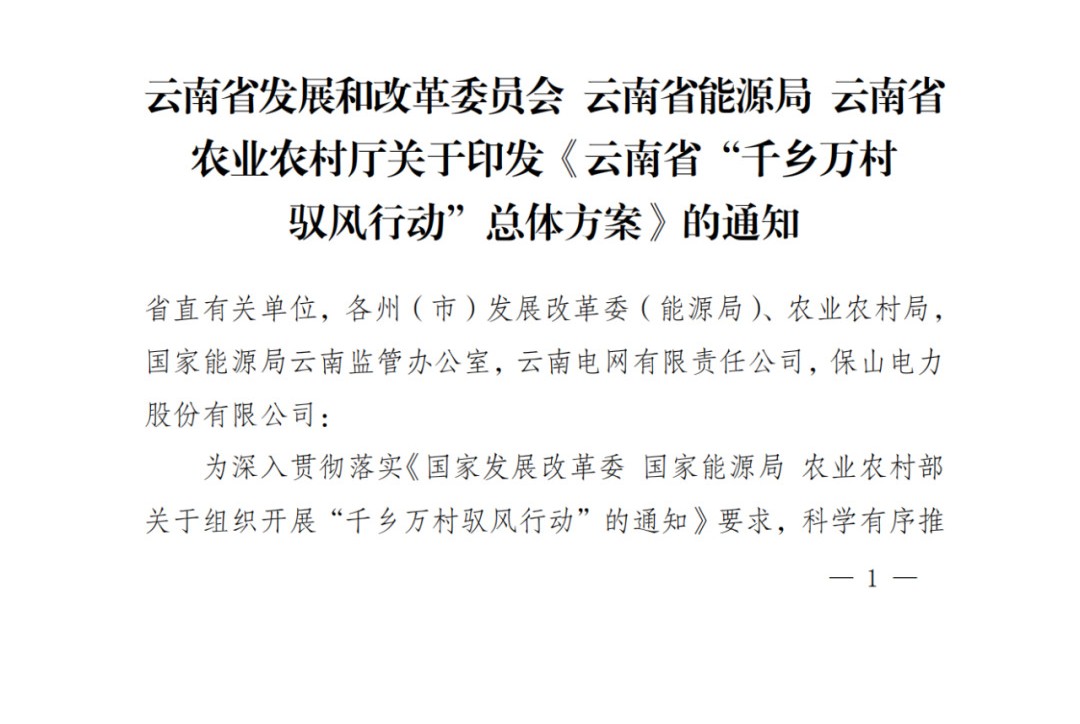 7月3日,云南省發(fā)改委 云南省能源局 云南省農(nóng)業(yè)農(nóng)村廳關(guān)于印發(fā)《云南省“千鄉(xiāng)萬村 馭風(fēng)行動”總體方案》的通知。