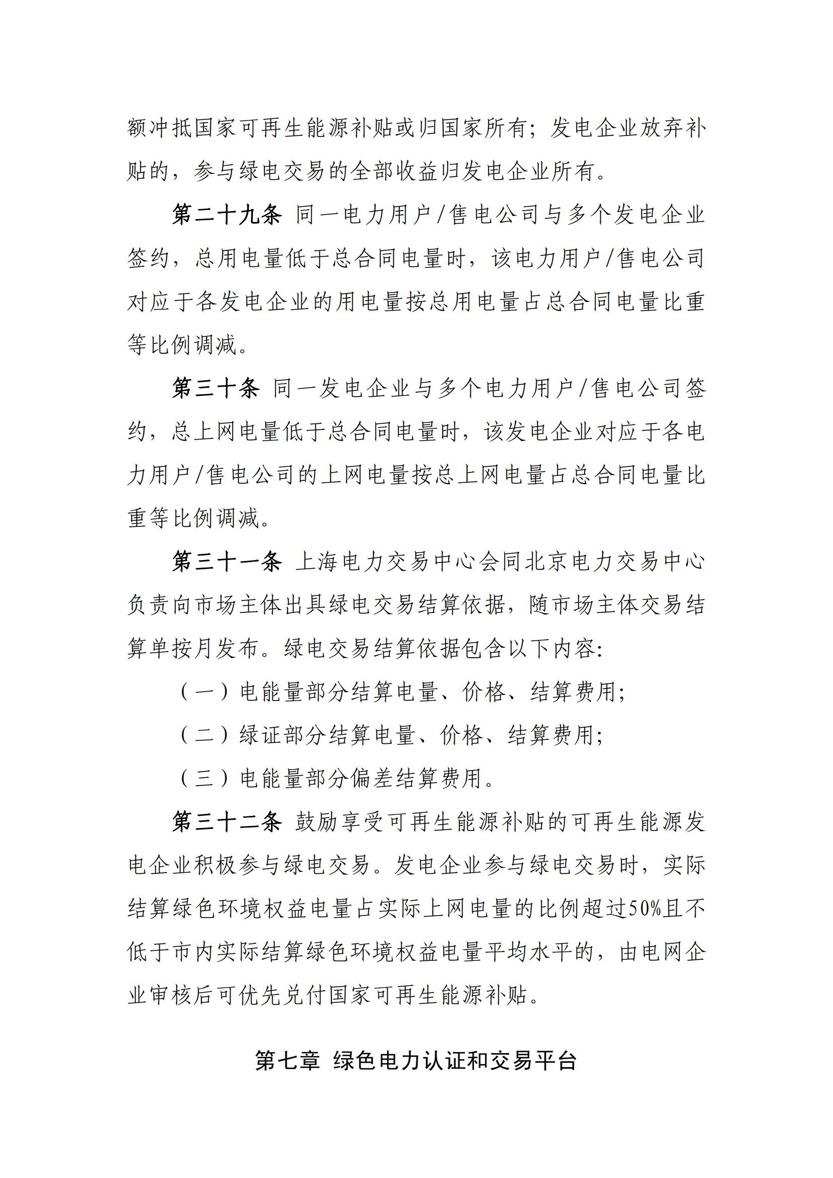 綠電交易電能量部分與綠色環(huán)境權(quán)益部分分開(kāi)結(jié)算。電能量部分按照上海市電力中長(zhǎng)期交易規(guī)則開(kāi)展結(jié)算。綠色環(huán)境權(quán)益部分按當(dāng)月合同電量、發(fā)電企業(yè)上網(wǎng)電量、電力用戶用電量三者取小的原則確定結(jié)算電量(以兆瓦時(shí)為單位取整數(shù),尾差不累計(jì)不結(jié)算),以綠色環(huán)境權(quán)益價(jià)格結(jié)算。