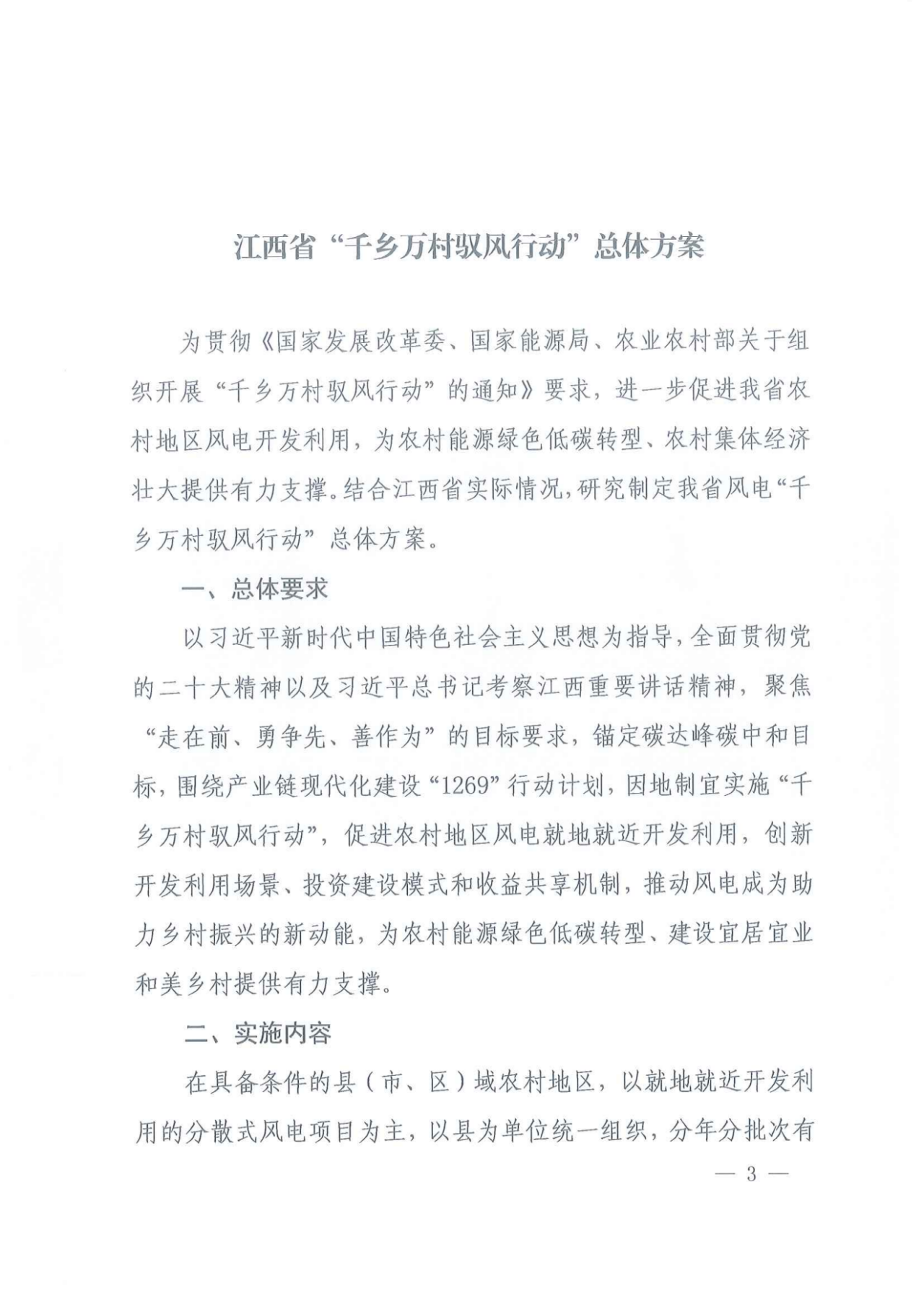 日前,江西省發(fā)展改革委江西省能源局江西省農(nóng)業(yè)農(nóng)村廳發(fā)布《關于印發(fā)<江西省千鄉(xiāng)萬村馭風行動總體方案>的通知》(以下簡稱《方案》)?!斗桨浮凤@示,先期重點在電網(wǎng)有消納空間或具備調(diào)節(jié)性能力電源的縣(市、區(qū))域開展試點,每個設區(qū)市統(tǒng)籌申報1-2個縣,所在縣不超過4萬千瓦風電建設容量,后續(xù)結合試點實際逐步擴大范圍。