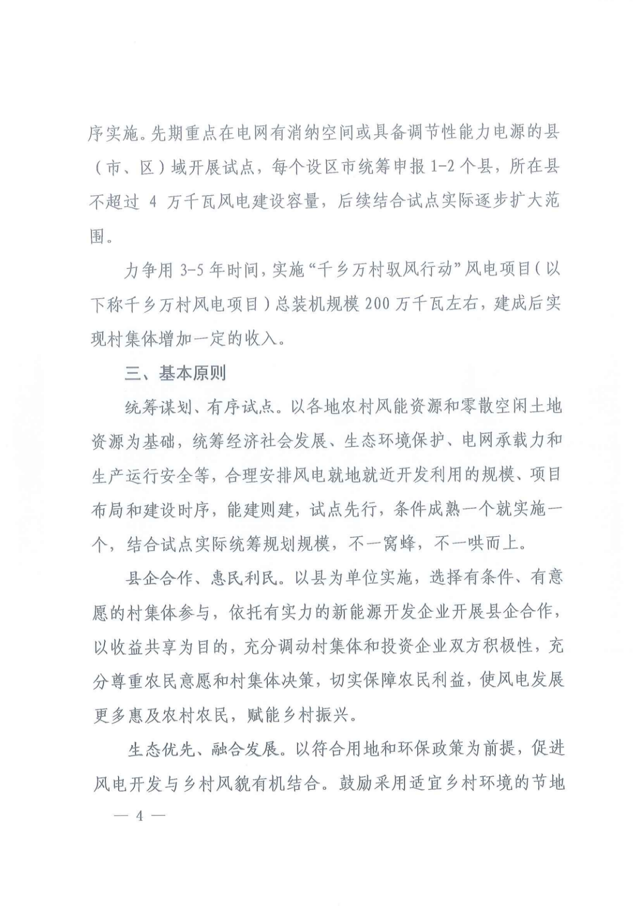 力爭用3-5年時間,實施“千鄉(xiāng)萬村馭風行動”風電項目總裝機規(guī)模200萬千瓦左右,建成后實現(xiàn)村集體增加一定的收入。