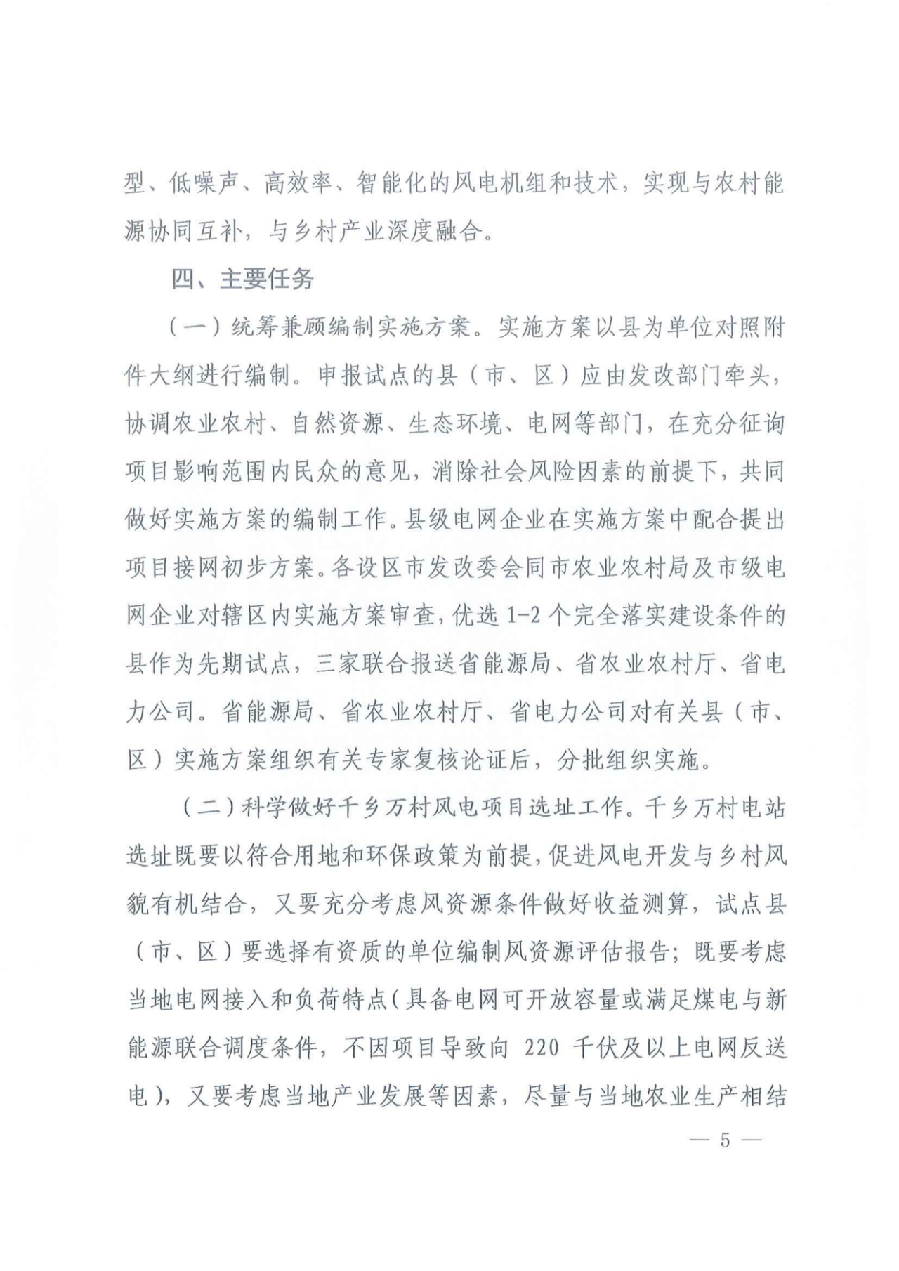 《方案》強調(diào),千鄉(xiāng)萬村電站選址既要以符合用地和環(huán)保政策為前提,促進風電開發(fā)與鄉(xiāng)村風貌有機結合,又要充分考慮風資源條件做好收益測算,試點縣(市、區(qū))要選擇有資質(zhì)的單位編制風資源評估報告;既要考慮當?shù)仉娋W(wǎng)接入和負荷特點(具備電網(wǎng)可開放容量或滿足煤電與新能源聯(lián)合調(diào)度條件,不因項目導致向220千伏及以上電網(wǎng)反送電),又要考慮當?shù)禺a(chǎn)業(yè)發(fā)展等因素,盡量與當?shù)剞r(nóng)業(yè)生產(chǎn)相結合。