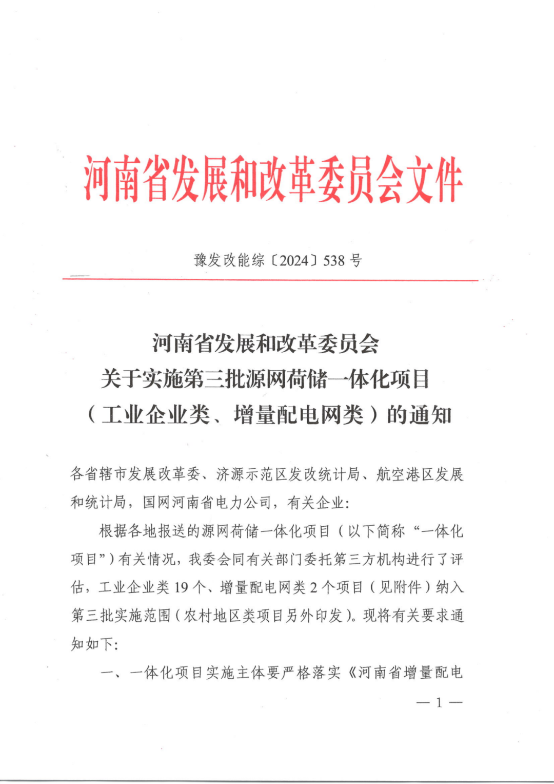 河南公布第三批源網(wǎng)荷儲一體化項目(工業(yè)企業(yè)類、增量配電網(wǎng)類)