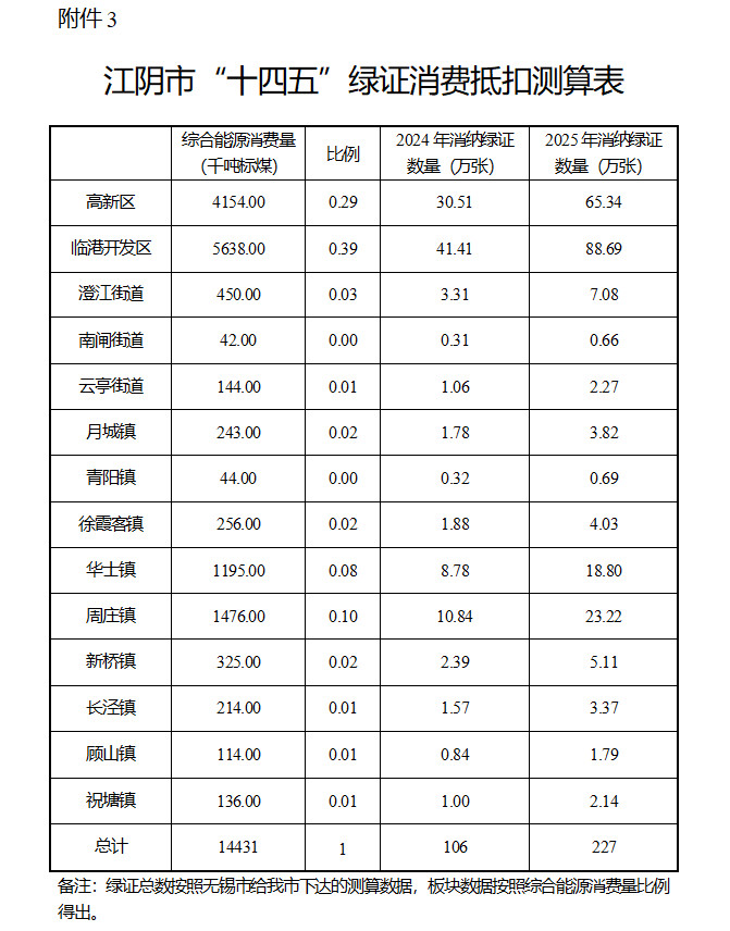 3、江陰市“十四五”綠證消費(fèi)抵扣測算表