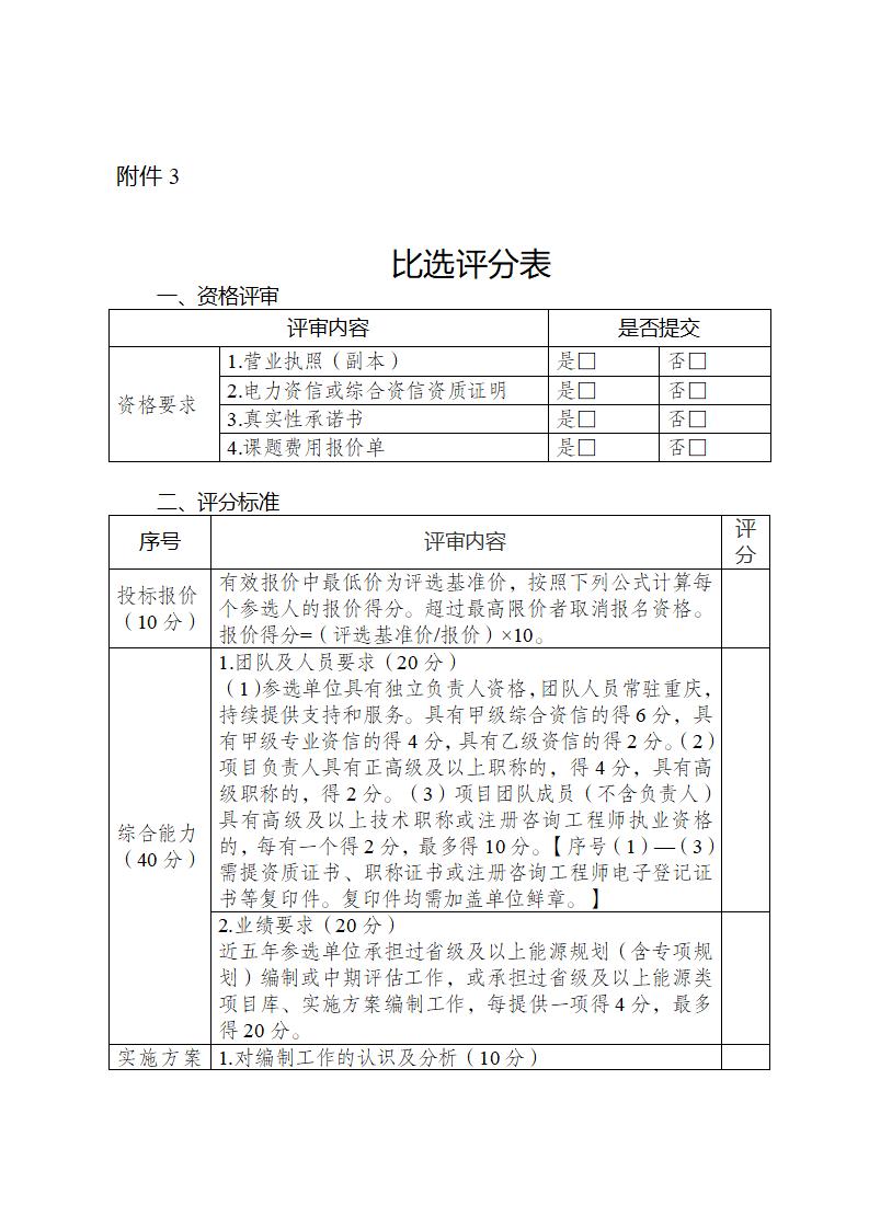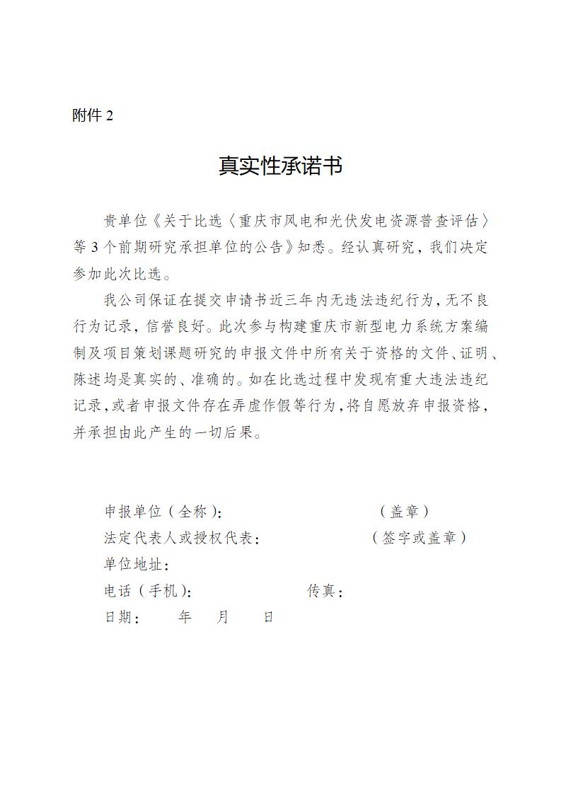 為加快構建我市新型電力系統(tǒng),我局擬向社會公開比選《重慶市風電和光伏發(fā)電資源普查評估》《基于車網(wǎng)雙向互動的新型智慧配電網(wǎng)建設研究》《西南綠電交易中心可行性研究》前期研究承擔單位,請有意向且具備相應研究能力的單位積極報名并提交相關材料,我局將組織有關單位、行業(yè)專家進行競爭性比選。現(xiàn)將有關事項公告如下: