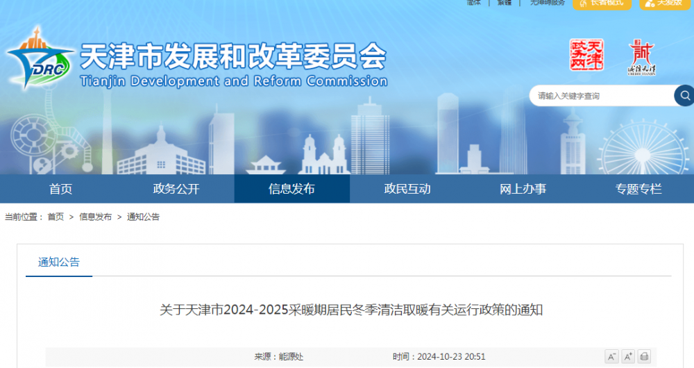 10月23日,天津市發(fā)展改革委發(fā)布關于天津市2024-2025采暖期居民冬季清潔取暖有關運行政策的通知。