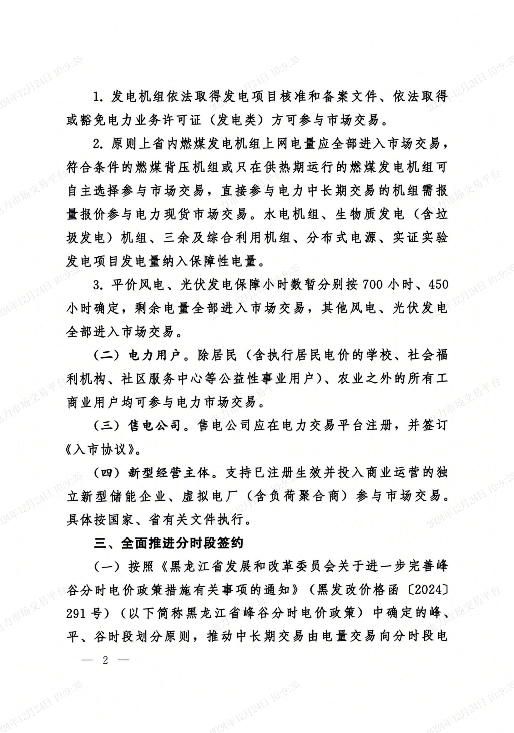 近日,黑龍江省發(fā)展和改革委員會發(fā)布關(guān)于做好黑龍江省2025年電力市場交易的通知,文件提到,落實(shí)國家有序推動全部工商業(yè)用戶進(jìn)入電力市場的要求,2025年,除居民、農(nóng)業(yè)等保障性電量外均可進(jìn)入市場,不控制省內(nèi)電力市場交易總體規(guī)模。