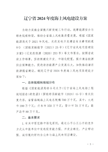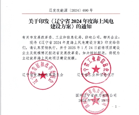 2025年1月2日,遼寧省2024年度海上風(fēng)電建設(shè)方案正式下發(fā)。