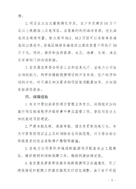《通知》還指出,項(xiàng)目業(yè)主應(yīng)注重規(guī)?;_發(fā),至少開發(fā)建設(shè)50萬千瓦以上規(guī)模海上風(fēng)電項(xiàng)目。注意集約利用海洋資源,優(yōu)化海底送出通道布置。除大連市DL2、DL3項(xiàng)目可以采取單條海底送出通道外,其他區(qū)域每條海底送出通道容量不得低于50萬千瓦。《通知》明確,有關(guān)市發(fā)展改革委按照國家相關(guān)政策、項(xiàng)目管理權(quán)限以及上述基本要求組織海上風(fēng)電項(xiàng)目競爭配置工作,經(jīng)市政府同意后于2025年1月24日前將項(xiàng)目業(yè)主及建設(shè)規(guī)模情況上報(bào)省發(fā)展改革委,逾期未報(bào)送視為自愿放棄項(xiàng)目建設(shè)規(guī)模。