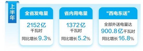 發(fā)電量、用電量、送電量持續(xù)增長,有力支撐全省經(jīng)濟發(fā)展。上半年,全省發(fā)電量、省內(nèi)用電量分別為2152億千瓦時、1372億千瓦時,同比分別增長9.3%、5.2%;“西電東送”較計劃增長,全部外送電量達(dá)900.8億千瓦時,同比增長16.8%。截至6月底,全省電力裝機突破1.66億千瓦,其中,綠色電力裝機超過1.5億千瓦,居全國首位,綠色裝機占比突破90%,綠色底色更加鮮明。