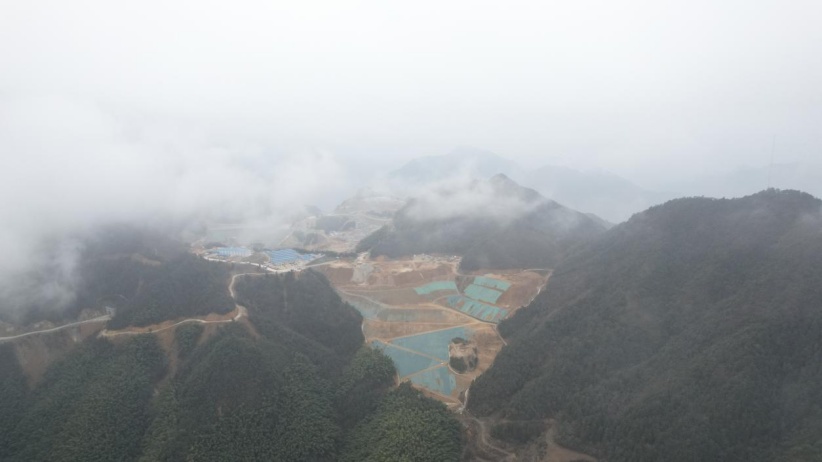 3月3日,浙江松陽抽水蓄能電站上水庫主壩填筑到頂。圖為該電站上水庫施工面貌。