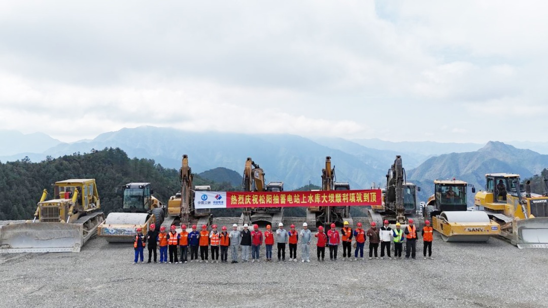 浙江松陽抽水蓄能電站上水庫主壩順利填筑到頂現場合影。