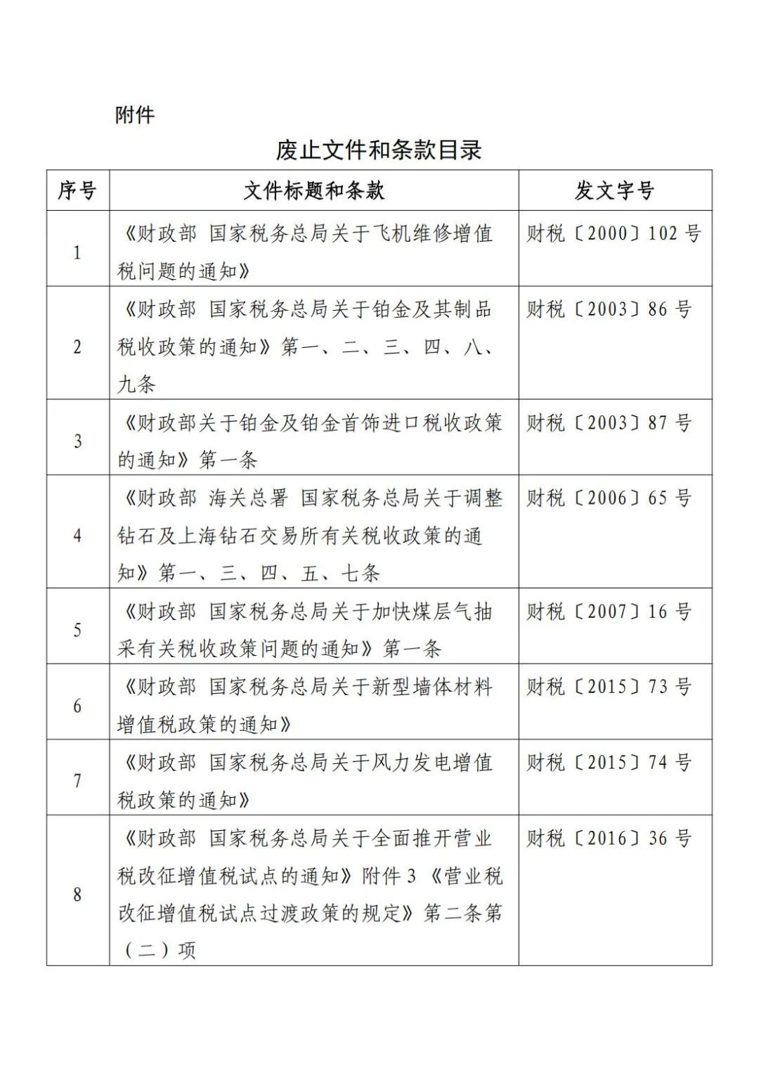 三、現(xiàn)行規(guī)定與本公告不一致的,以本公告為準(zhǔn)?!敦?cái)政部 國家稅務(wù)總局關(guān)于風(fēng)力發(fā)電增值稅政策的通知》(財(cái)稅〔2015〕74號)等文件規(guī)定自2025年11月1日起廢止,具體見附件。