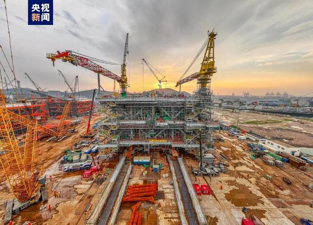在山東青島國(guó)際化高端裝備制造基地,一個(gè)重達(dá)17000多噸“巨無霸”,是目前在建國(guó)際上最大的油氣集輸平臺(tái)。經(jīng)過34個(gè)月的施工建造,今天正式交付,月底將搭乘大型運(yùn)輸船,啟程前往6400海里以外的海域進(jìn)行安裝。
