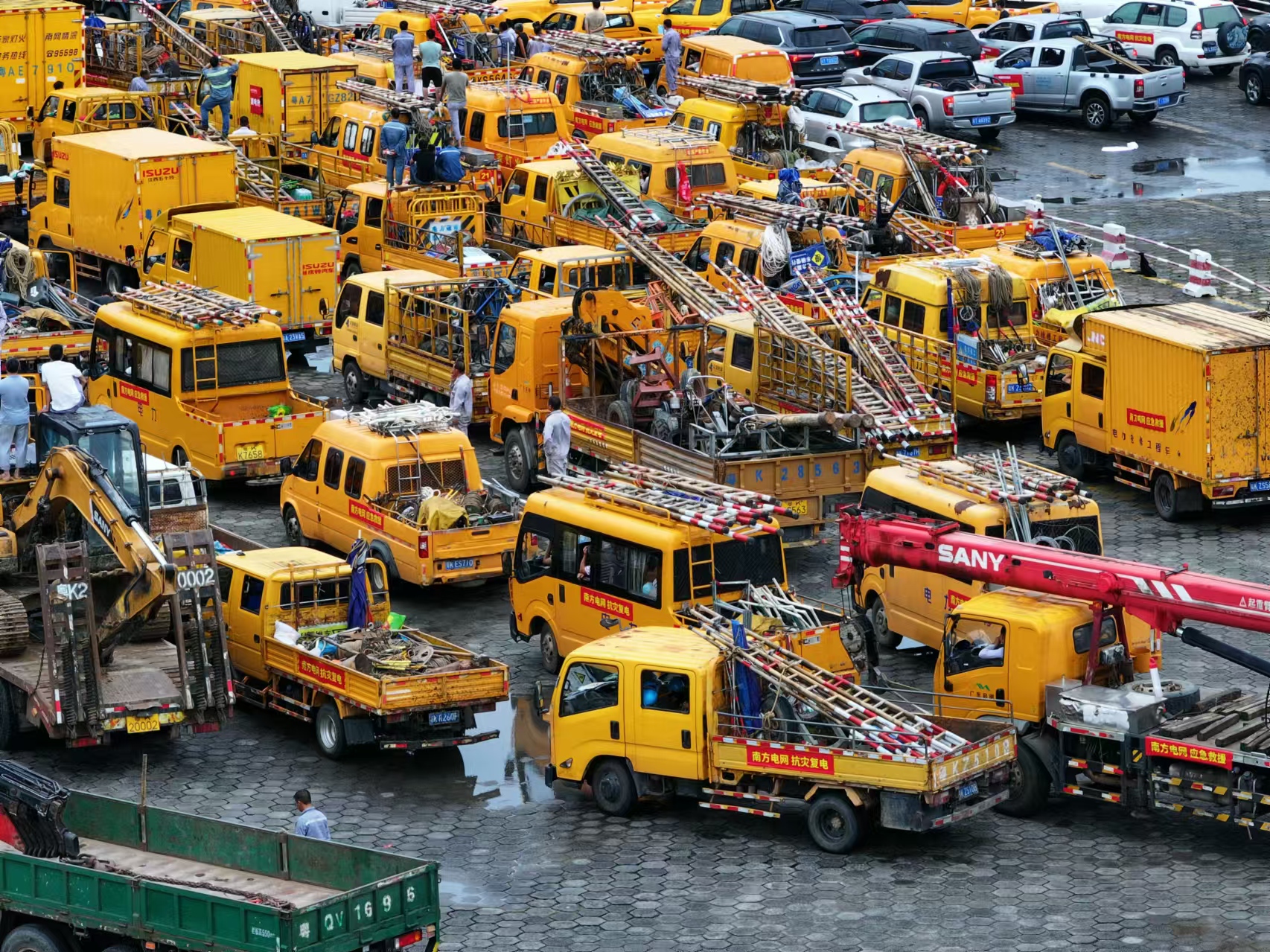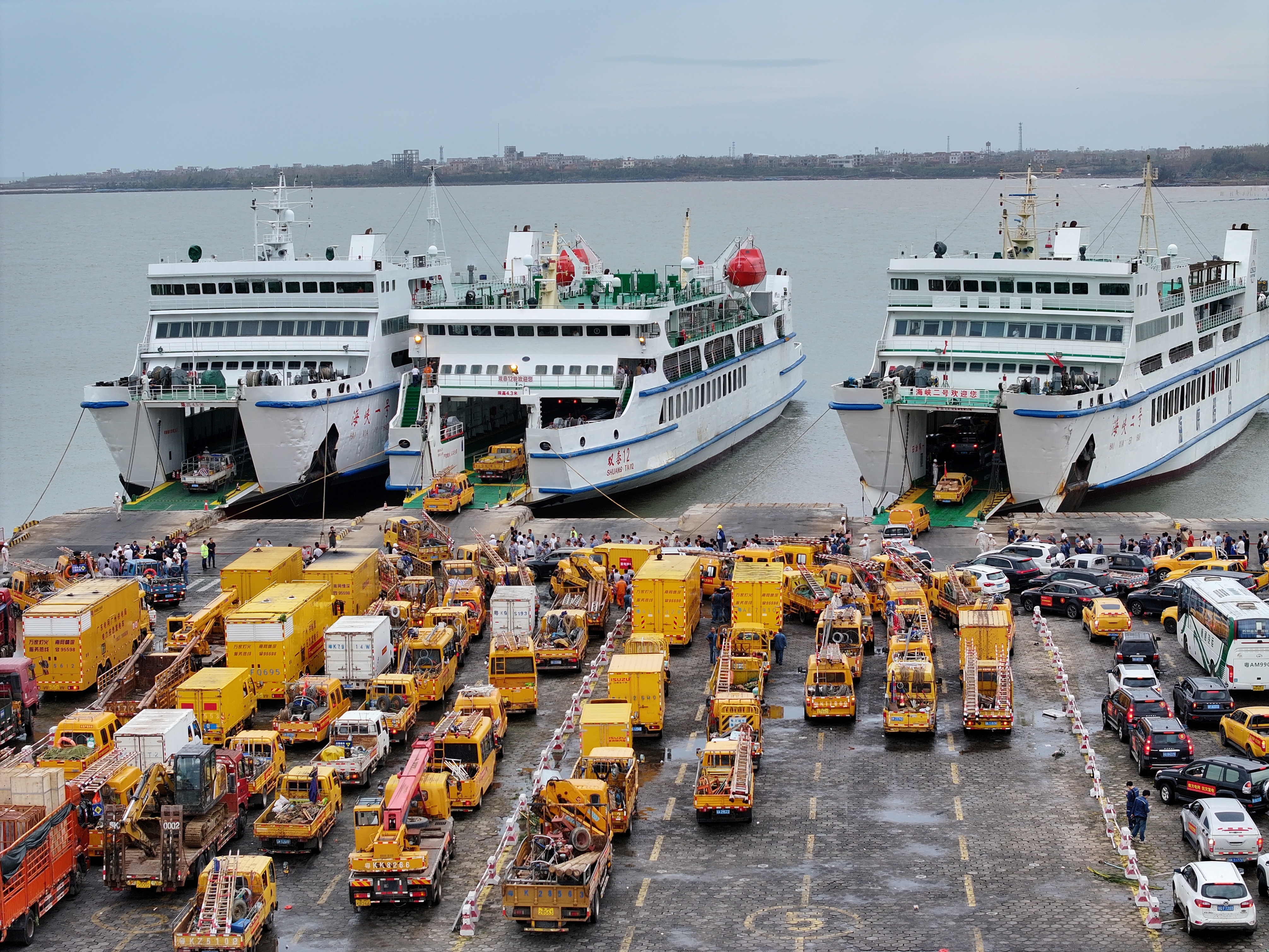 7日下午14時(shí),在廣東湛江徐聞港,南方電網(wǎng)從廣東、廣西、貴州調(diào)派的第二批支援海南的搶修隊(duì)伍陸續(xù)集結(jié),待通航后第一時(shí)間過港。而在另一處的海安新港,集結(jié)了來自各地前來救援的搶險(xiǎn)隊(duì)伍和300余輛應(yīng)急支援車輛。這些搶修隊(duì)伍攜帶了發(fā)電車、發(fā)電機(jī)、搶修物資等“重型裝備”,準(zhǔn)備在通航條件允許的情況下,第一時(shí)間跨海前往海南進(jìn)行電力搶修工作,恢復(fù)受影響地區(qū)的電力供應(yīng)。