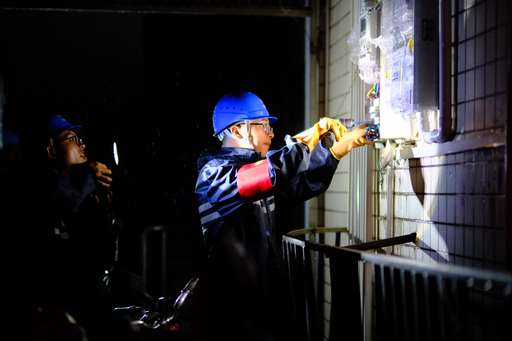 9月7日凌晨,南方電網(wǎng)廣東茂名茂南供電局城區(qū)供電所青年突擊隊(duì)成員,緊急處理南雅居小區(qū)受臺(tái)風(fēng)影響的停電故障。龐世俊攝