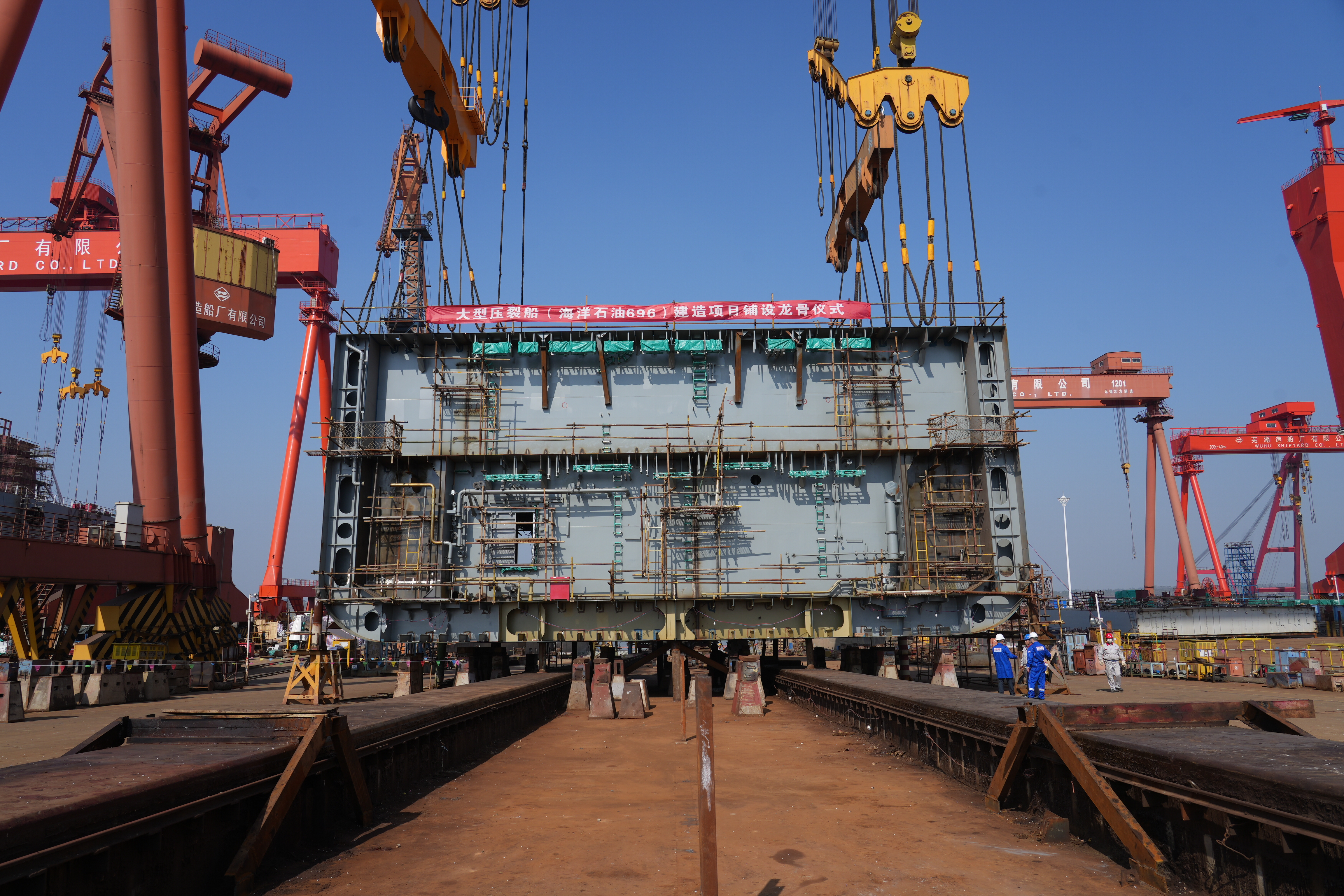 我國(guó)首艘集成式大型壓裂船完成龍骨鋪設(shè)