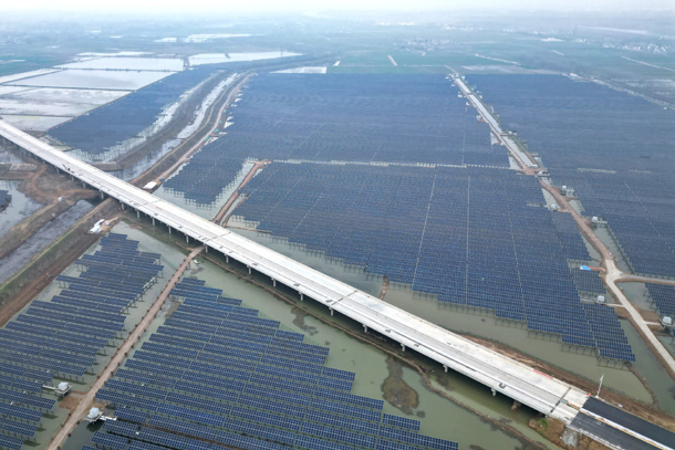 圖為龍?jiān)措娏Π不栈羟耨T瓴漁光互補(bǔ)發(fā)電項(xiàng)目