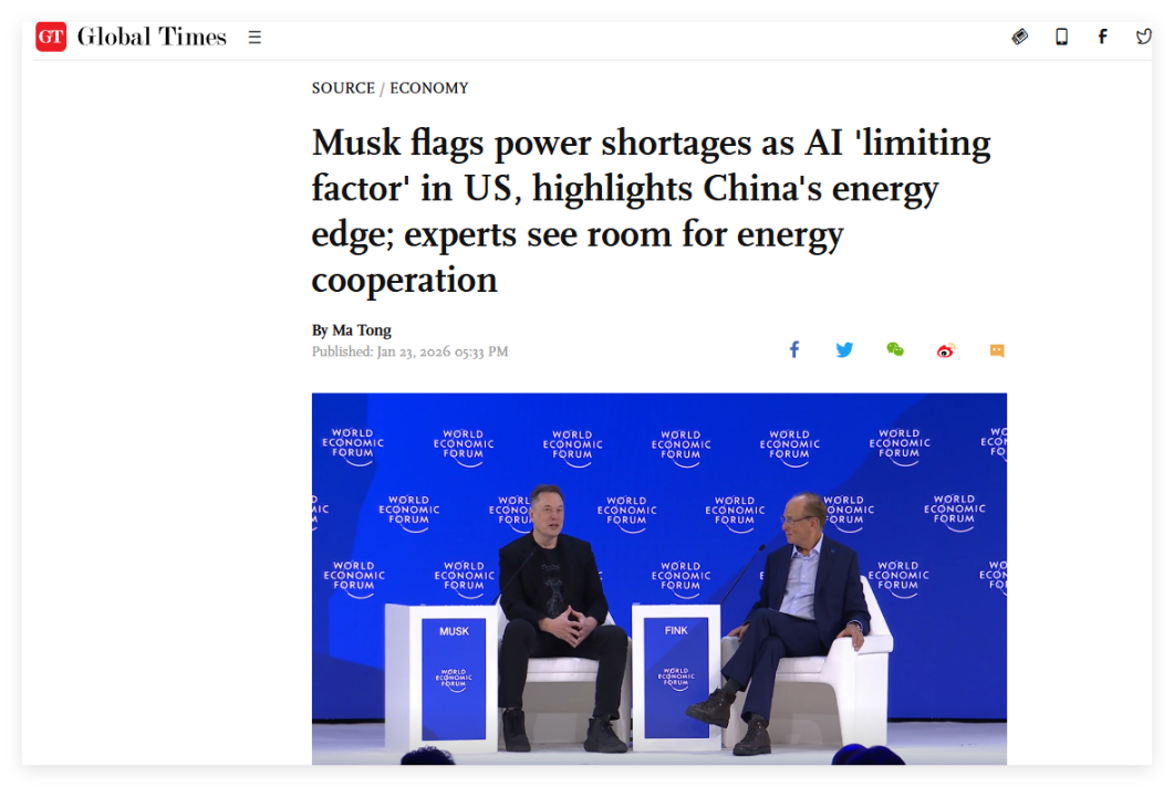 此前,諸如埃隆·馬斯克和黃仁勛等美國(guó)人工智能領(lǐng)域的知名企業(yè)家,也表達(dá)過對(duì)中國(guó)能源發(fā)展優(yōu)勢(shì)的稱贊,以及對(duì)美國(guó)在這方面裹足不前的擔(dān)憂。