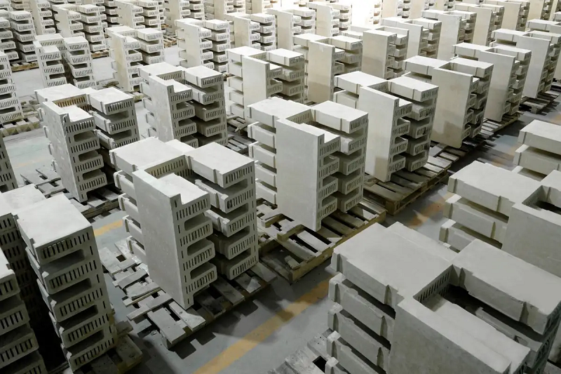 Rondo能源公司制成熱電池的磚塊在生產(chǎn)設(shè)施內(nèi)整齊排列。圖片來源:《新科學(xué)家》網(wǎng)站