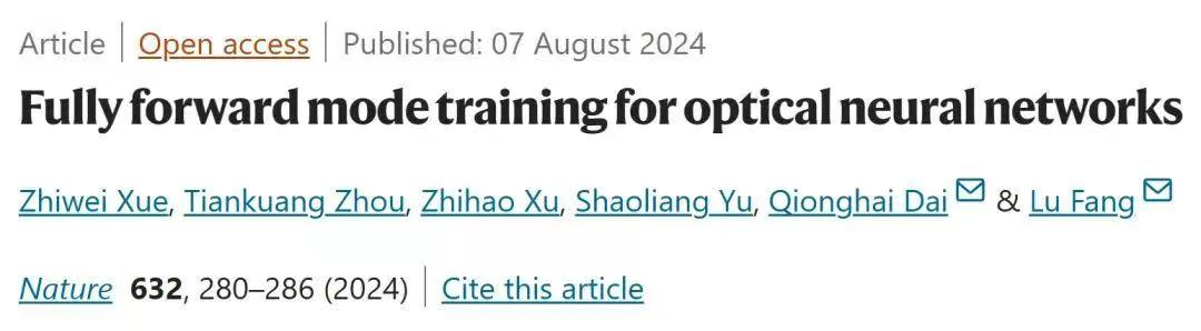清華大學(xué)電子工程系方璐教授課題組和自動(dòng)化系戴瓊海院士課題組日前實(shí)現(xiàn)了光計(jì)算系統(tǒng)大規(guī)模神經(jīng)網(wǎng)絡(luò)的高效精準(zhǔn)訓(xùn)練。該研究成果以“光神經(jīng)網(wǎng)絡(luò)全前向訓(xùn)練”為題,于北京時(shí)間8月7日晚在線發(fā)表于《自然》期刊。