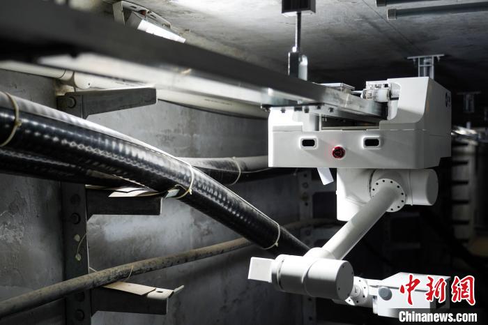 據(jù)介紹,巡檢過程中,機(jī)器人會順著電纜隧道上方的懸吊軌道自動(dòng)行駛,在巡檢點(diǎn)位,或路過關(guān)鍵設(shè)備,會放下伸縮臂,用“大眼睛”巡檢電纜運(yùn)行狀態(tài)。后方監(jiān)控屏幕上,會呈現(xiàn)紅外圖譜、視頻畫面和設(shè)備運(yùn)行狀態(tài)等實(shí)時(shí)數(shù)據(jù)。