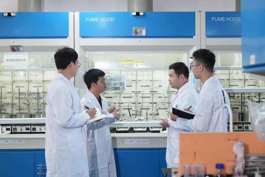 海南大學(xué)科研人員在實(shí)驗(yàn)室進(jìn)行科研探討。新華社發(fā)