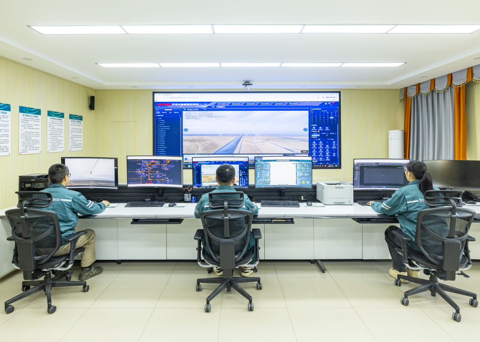1月16日,新疆送變電公司員工在生產(chǎn)管控中心觀測(cè)“觀冰精靈”回傳畫(huà)面。王佳雪攝