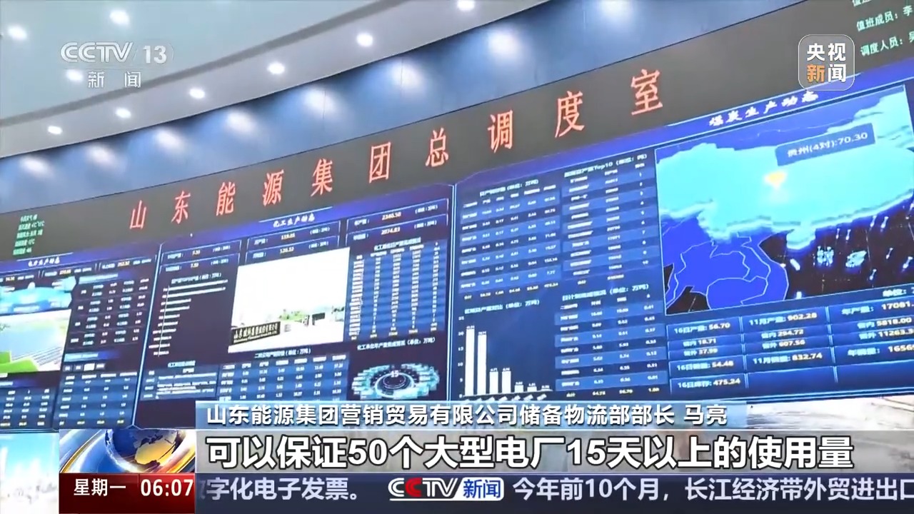 山東能源集團營銷貿(mào)易有限公司儲備物流部部長 馬亮:可調(diào)度煤炭儲備完成504.67萬噸,可以保證50個大型電廠15天以上的使用量。