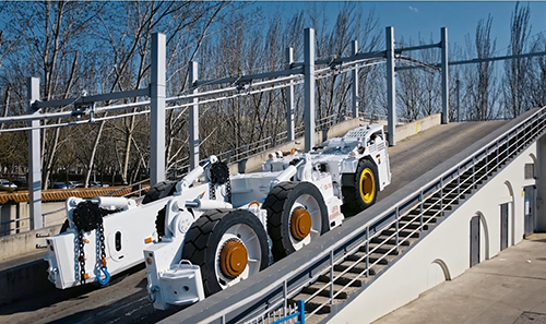 該套裝備由框架式支架搬運車和鏟板式支架搬運車組成。框架式支架搬運車搭載高功率清潔防爆發(fā)動機,動力強勁;6*6全輪驅(qū)動,牽引力大;具備反拖制動功能,重載下坡安全性高。鏟板式搬運車搭載蓄電池動力源,井下作業(yè)零排放;采用分布式輪邊驅(qū)動系統(tǒng),電液復(fù)合協(xié)調(diào)制動,具有優(yōu)越的駕駛操控性能。同時,該套裝備搭載了全景環(huán)視、人員防接近、自動駐車等主動安防智能輔助駕駛系統(tǒng),提升了大型裝備在受限空間作業(yè)的安全性能。