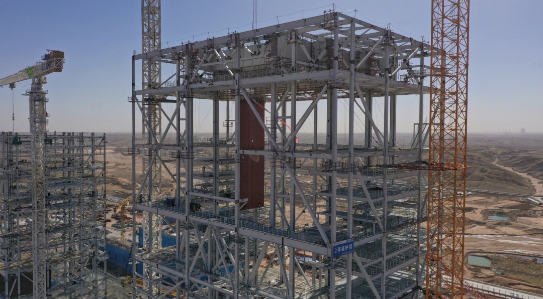 庫布其基地配套支撐性煤電項目首臺機組鍋爐受熱面完成首吊