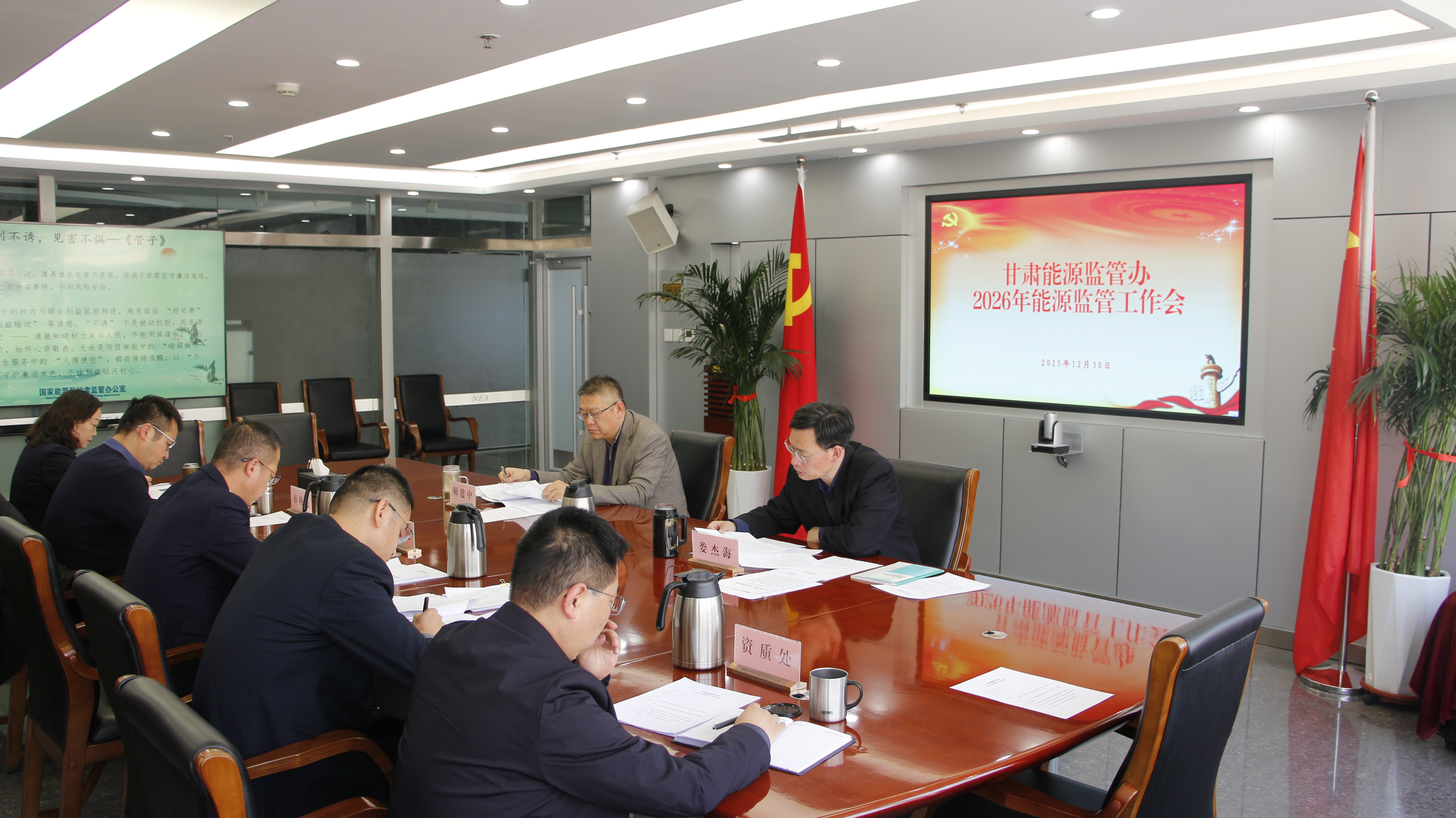 2025年12月30日,甘肅能源監(jiān)管辦召開2026年能源監(jiān)管工作會(huì)議,傳達(dá)學(xué)習(xí)全國(guó)能源工作會(huì)議、國(guó)家能源局監(jiān)管工作會(huì)議和甘肅省委十四屆九次全會(huì)、經(jīng)濟(jì)工作會(huì)議精神等,梳理總結(jié)2025年工作開展情況,分析研判面臨的形勢(shì)任務(wù)和存在的短板不足,安排部署2026年重點(diǎn)工作任務(wù)。